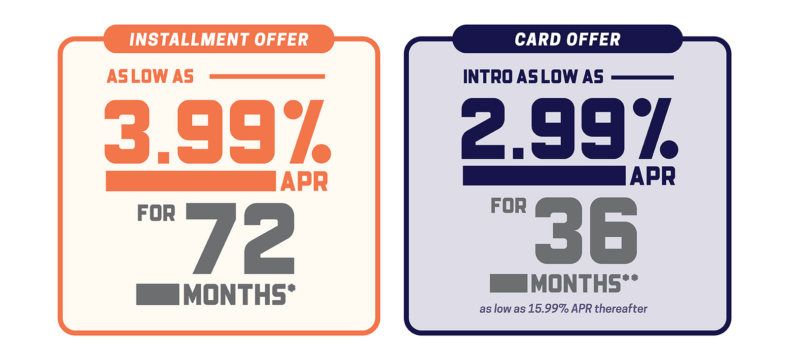 AS LOW AS 3.49% APR FOR 144 MONTHS1
